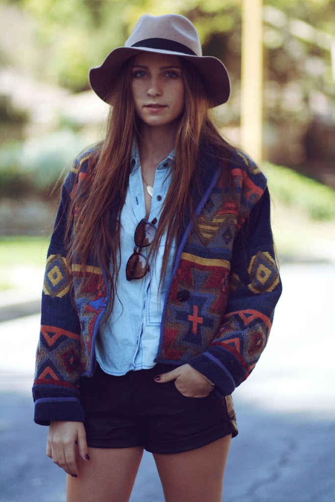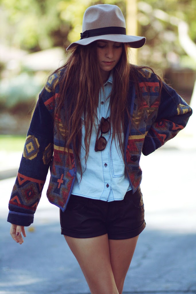 denim shirt: LNA X PacSun       jacket: vintage       shorts: billabong X lookbook.nu       hat: asos       sunglasses: sunglasses-shop.co.uk       shoes: vintage      sunbird necklace: Lulus