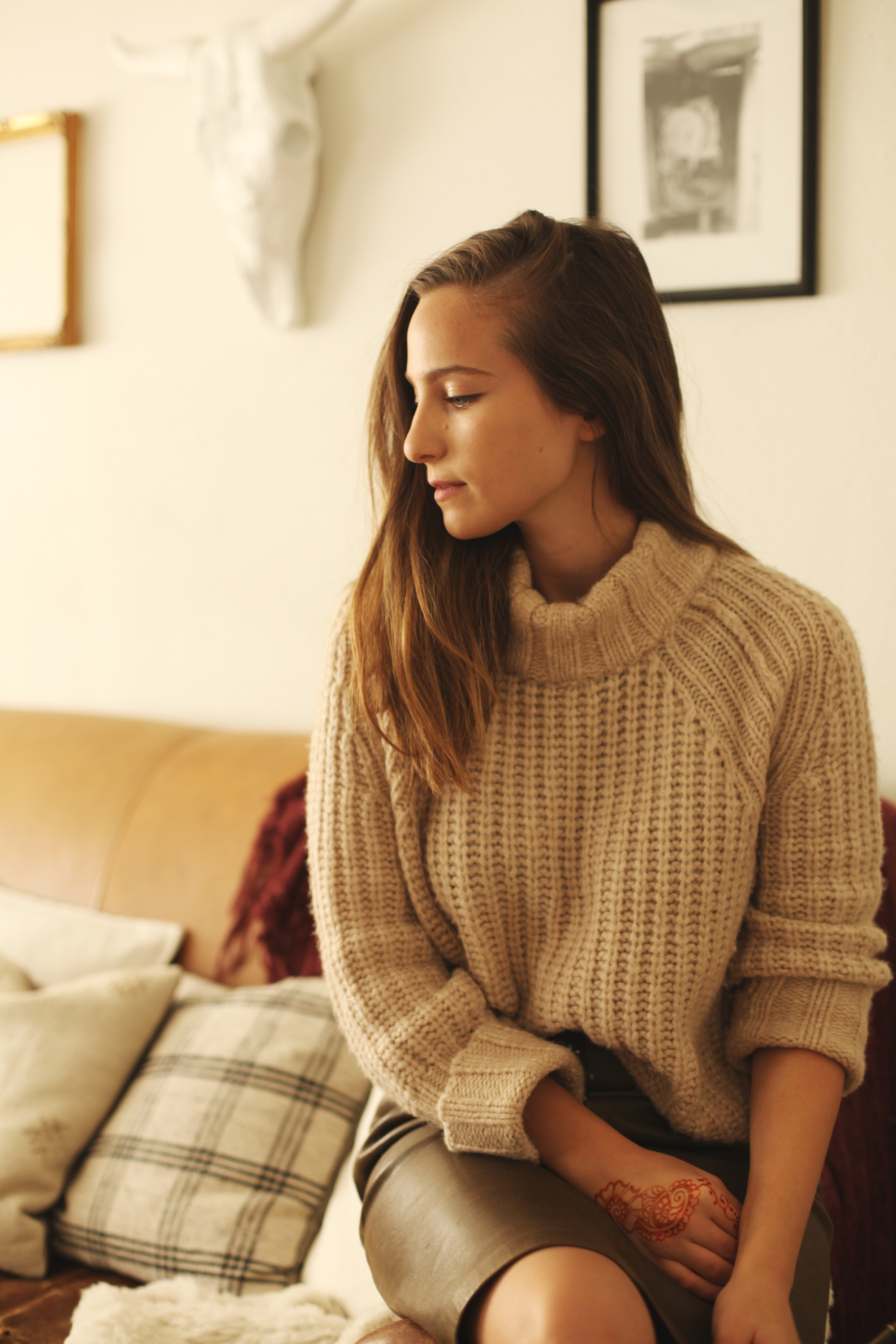 [su_column size=”3/4″]Keeping things modest for some family parties in a mid-length leather skirt and a sweater. This sweater is the softest thing I own. I’ll admit, I’ve worn it almost every day this week. I think this outfit is perfect for those holiday family parties. Grandma will have nothing to complain about.